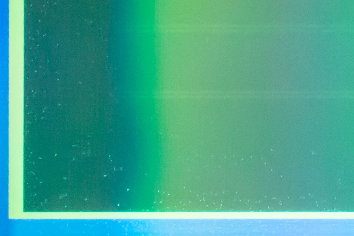 Sulla destra si nota un vero granello di polvere, mentre nell'angolo inferiore sinistro le macchie sotto il vetro del sensore. Anche a diaframmi così chiusi, quindi, il difetto è visibile solo in circostanze molto particolari, mentre nella grande maggioranza dei casi risulta irrilevabile.