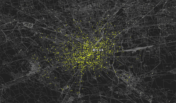 Oltre alla mappa mondiale, la classifica riporta anche la concentrazione di selfie nelle diverse città, vi riportiamo quella di Milano, magari qualcuno dei lettori riconosce il luogo di uno dei suoi autoscatti.