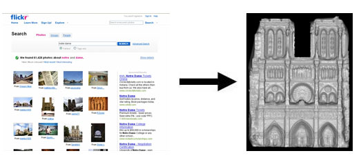 NewScientistTech riporta i punti salienti del progetto, sottolineando come, ad esempio, esistano su Flickr ben 500.000 immagini ritraenti la cattedrale di Notre-Dame a Parigi. Le immagini sono riprese in svariate angolazioni e in condizioni di luce a volte molto diverse e questo rappresenta un problema per la costruzione dei modelli 3D.