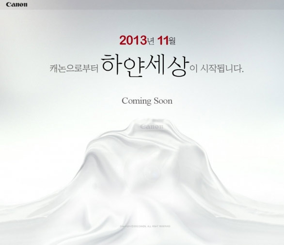 Dal teaser si deduce che il mese di novembre sarà caratterizzato da una novità reflex anche per la casa biancorossa. La scritta in coreano recita: "November 2013, Canon will start from the white world. Coming Soon". Sono già partite le scommesse per cercare di identificare il prodotto, in molti si sono anche messi a lavorare sull'immagine aumentando e diminuendo contrasto/luminosità/ombre/alte luci per cercare di estrarre particolari nascosti. Alcuni puntano su qualcosa di simile a EOS 100D, mentre altre voci non escludono possa essere una mirrorless con forme da reflex (seguendo quanto già fatto da Sony con A3000). E se fosse la nuova EOS 7D?