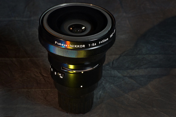 Il Nikkor 10mm OP F5.6 si contraddistinse per essere un fisheye a proiezione ortografica (anzichè equidistante) e soprattutto per essere il primo obiettivo della storia dotato di una elemento asferico (la lente frontale).