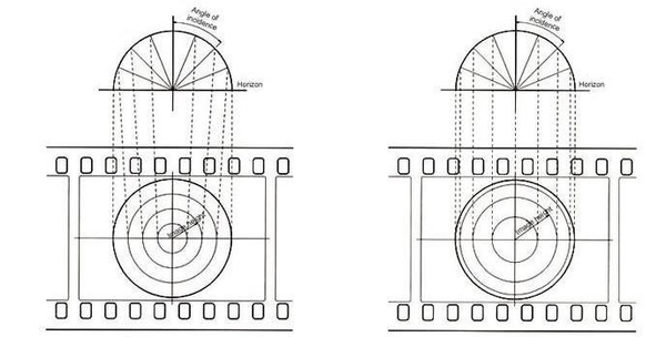a sinistra lo schema di proiezione equidistante
