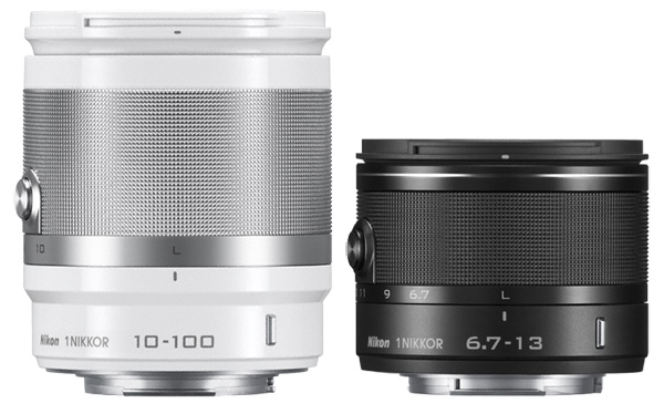 Nikon, come già visto nei rumors, ha anche aggiornato la gamma delle ottiche con i due nuovi obiettivi 1 NIKKOR VR 6.7-13mm f/3.5-5.6 e 1 NIKKOR VR 10-100mm f/4-5.6. Il primo aggiunge finalmente una focale grandangolare alla gamma Nikon 1 con una focale equivalente di 18-35mm, mentre il secondo ha una focale equivalente di 27-270mm circa, pari a quella dello zoom motorizzato già in gamma, ma in questo caso, anche grazie al design collassabile, Nikon ha puntato al massimo contenimento delle dimensioni.