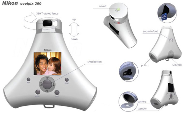 In rete la si trova con il nome Nikon 360, ma non è chiaro l'effettivo rapporto con il produttore di apparecchi fotografici. Ci riferiamo a una fotocamera 'concept' creata dal designer Ye Chen, che ha trovato spazio su Yanko Design.