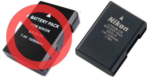 Diversi utenti hanno segnalato a NikonRumors l'impossibilità di utilizzare batterie di terze parti dopo il recente aggiornamento firmware delle fotocamere Nikon D3100, D3200, D5100, D5200 e Coolpix P7700, accomunate dall'uso del modello di accumulatore EN-EL14. A seguito dell'aggiornamento le fotocamere non funzionano nemmeno con batterie originali inserite in battery grip di terze parti.