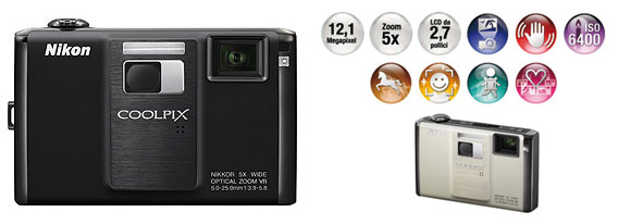 Caratteristiche simili (ottica non sporgente 28-140mm equivalenti e sensore da 12,1 megapixel) anche per la Nikon Coolpix S70, che offre un display OLED da 3,5" per una migliore visualizzazione degli scatti. Questa fotocamera inoltre permette di registrare filmati HD a 1280x720 pixel di risoluzione.