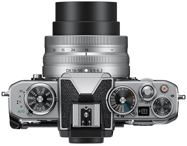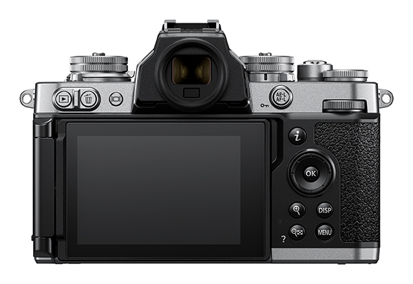 La livrea argento richiama in modo netto le Nikon di un tempo, anche grazie al ritorno al logo inciso sul (finto in questo caso) pentaprisma, che è quello degli anni '70-'80. Invece di un pentaprisma troviamo un mirino elettronico con pannello OLED da 2,36 milioni di punti, ma con un oculare rotondo, anch'esso richiamo molto evidente alla Nikon FM2.