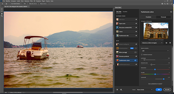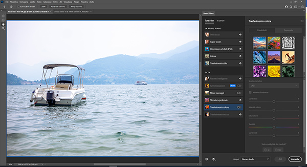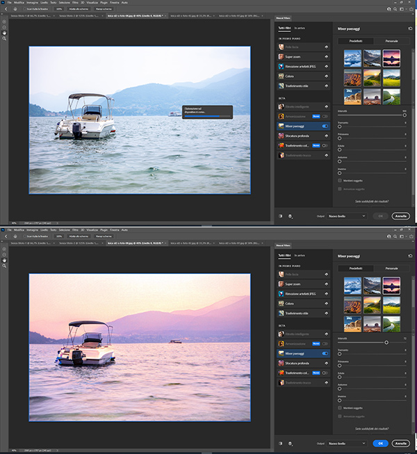 Avevano destato grande interesse al loro lancio i Filtri Neurali, oggi Adobe ne aggiunge tre nuovi, che rispondono a esigenze diverse. Mixer Paesaggi permette di trasformare un paesaggio applicando all'immagine attributi di un altro panorama: ad esempio è possibile prendere una foto scattata nelle ore centrali del giorno e trasformarla in un tramonto, oppure ancora rendere invernale un paesaggio estivo. Simile anche il filtro Trasferimento Colore, che permette applicare in un click una palette di colori da un'immagine all'altra.