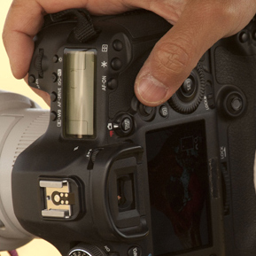 Ufficialmente il giapponese stava provando il nuovo 200-400mm Canon, ma l'attenzione si è subito concentrata sul corpo macchina. I particolari che la destano maggiormente sono il nuovo posizionamento del tasto Q 'Quick Menu', appena sopra la ghiera posteriore, e la presenza della replica del joystick nell'impugnatura verticale, grazie a un inedito battery grip.