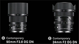 Da un lato abbiamo il nuovo medio tele super compatto Sigma Contemporary 90 mm F2.8 DG DN, che a dispetto della focale abbastanza lunga ha dimensioni ridottissime. La seconda ottica copre una focale già presente nella Serie I, ma ora con un'apertura maggiore: Sigma Contemporary 24 mm F2 DG DN. In entrambi i casi la costruzione delle ottiche è totalmente in metallo.