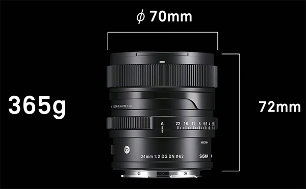 Sigma Contemporary 24 mm F2 DG DN si basa invece su un design da 13 elementi in 11 gruppi, con 1 lente FLD, due SLD e 2 asferiche. In questo caso la distanza minima di messa a fuoco è pari a 24,5 centimetri e l'ago della bilancia si ferma a 365 grammi. Sigma ha indicato un prezzo di 619 € per entrambi gli obiettivi.