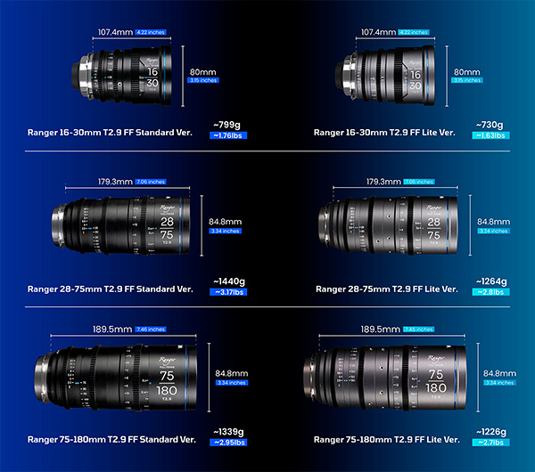 Assieme ai fratelli Laowa Ranger 28-75mm T2.9 e Laowa Ranger 75-180mm T2.9, il nuovo obiettivo forma un terzetto in grado di coprire con apertura costante focali da 16 a 180 mm con zoom 11x.