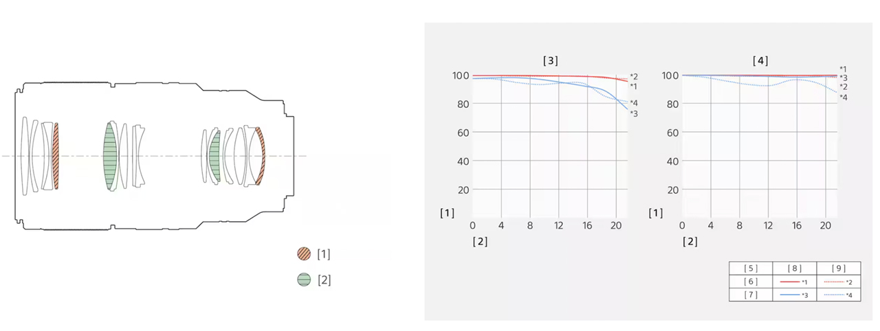 Lo schema ottico di questa lente prevede 17 elementi in 13 gruppi. Tra questi si trovano due elementi XA (extreme aspherical), utili per contenere le aberrazioni e minimizzare l'effetto "onion ring" nello sfocato, oltre a due elementi ED (extra-low dispersion) che riducono le aberrazioni cromatiche. Il trattamento Nano AR Coating II è stato applicato per limitare flare e ghosting anche in condizioni di luce difficile. Il diaframma a 11 lamelle circolari contribuisce a un bokeh morbido e naturale.