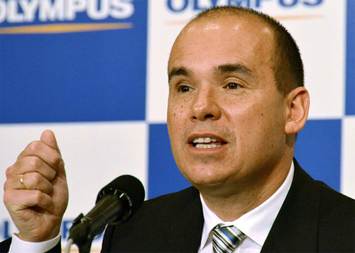 Sul finire del 2011 Olympus era stata colpita da uno scandalo che l'aveva portata sull'orlo del precipizio. L'allontanamento dell'allora CEO e presidente Michael Woodford aveva scoperchiato un vaso di Pandora: le dichiarazioni di Woodford avevano portato all'apertura di indagini e alla fine si era scoperto che negli anni '90 era stata abitudine dei vertici Olympus quella di truccare i bilanci. Olympus era arrivata a mascherare perdite superiori al miliardo di dollari.