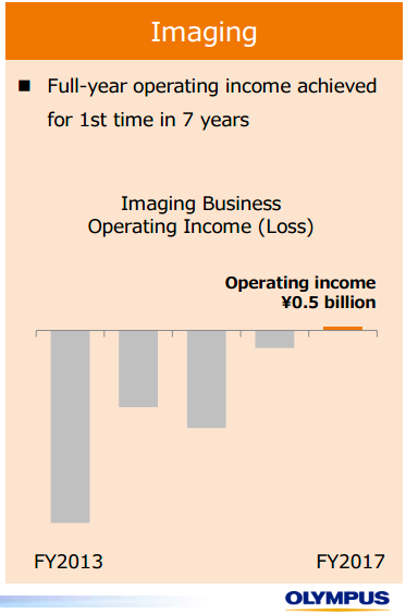 Oggi a diversi anni di distanza Olympus raccoglie i frutti del lavoro fatto e per la prima volta dopo 7 anni anche il bilancio del settore Imaging torna in attivo, segnando un +500 milioni di YEN nell'apposita casella. In dollari siamo poco sotto i 4,5 milioni. Per l'anno prossimo i piani di Olympus sono quelli di continuare a generare profitti, nonostante i cambiamenti e la contrazione del mercato, con focus particolare sui prodotti flagship.