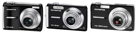 La serie FE si compone di tre modelli che adottano un sensore da 8 megapixel e si differenziano per zoom e caratteristiche tecniche. La FE-310 e la FE-340 utilizzano un'ottica di focale equivalente pari a circa 36-180mm, ma si differenziano per le dimensioni del display (2,5" e 2,7"), per lo spessore del corpo e per alcune specifiche tecniche.