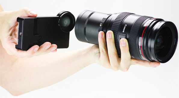 L'ottica del vostro iPhone vi ha stancato? Qualche tempo fa abbiamo parlato di aggiuntivi ottici per trasformare il vostro iPhone in un teleobiettivo, ma questa volta Photojojo ha fatto molto di più. L'azienda ha creato una custodia per iPhone studiata per permettere l'aggancio di ottiche reflex Canon EF e Nikon e trasformare il proprio cellulare in una vera macchina fotografica, con tanto di possibilità di aggancio a tracolla.