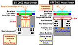 Lo strato organico ha poi caratteristiche che lo rendono nativamente più performante nel design mostrato da Panasonic, riuscendo a raccogliere fotoni con angoli di incidenza anche di 60°, mentre gli attuali sensori tradizionali arrivano a 30°/40° in genere. Lo strato organico può essere utilizzato per strutture particolari, come una di quelle proposte da Panasonic che per ogni pixel include due differenti tipi di celle: una ad alta sensibilità, l'altra ad elevato livello di saturazione. In questo modo è possibile arrivare a una gamma dinamica di 123dB su singola esposizione (100 volte quella di un normale sensore), un risultato che i sensori tradizionali possono ottenere solo combinando diverse esposizioni, una tecnica che non permette la ripresa di immagini in movimento.