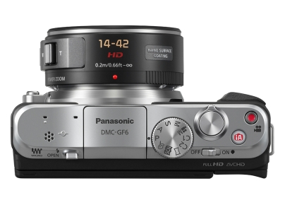 Rispetto a Lumix GF5 la calotta superiore vede poi 2 novità: l'integrazione di una ghiera dei modi (sempre molto utile a nostro avviso) e del comando a 2 vie concentrico al pulsante di scatto per azionare lo zoom nel caso venga montata un'ottica motorizzata, ad esempio il compatto 14-42mm, compagno perfetto per questo corpo macchina.
