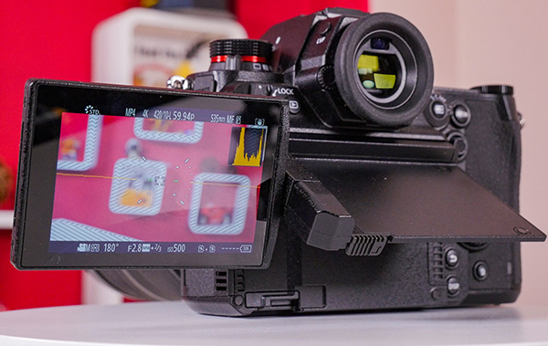 Anche a livello di interfaccia la fotocamera offre diverse ottimizzazioni per il mondo video, a partire dal pulsante di avvio della registrazione che non solo è molto più grande ed evidente rispetto a quello che generalmente dedicato ai video sulle mirrorless più fotografiche, ma è anche replicato sulla parte frontale in basso vicino all'innesto dell'ottica, laddove chi è abituato alle cineprese digitali si aspetta di trovarlo. In questa direzione va anche il display orientabile vari-angle, che offre molta flessibilità di utilizzo, ma che dà anche una sensazione di grande solidità. Oltre allo snodo vari-angle offre anche la possibilità di essere inclinato verso l'alto senza dover essere aperto ed esteso lateralmente: in questo modo viene incontro a praticamente qualsiasi scenario d'utilizzo. Il display è di tipo touchscreen e permette di interagire direttamente con le varie impostazioni.