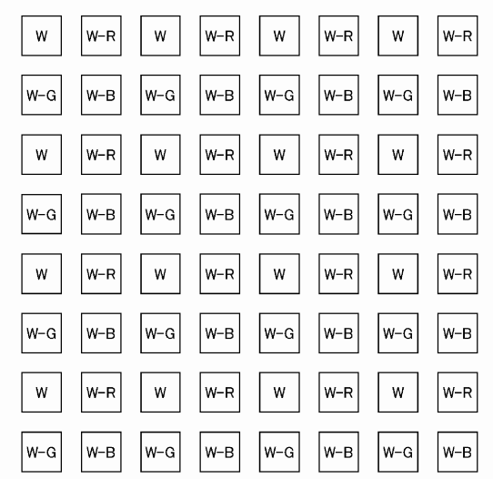 Un altro difetto della matrice colorata Bayer è lo 'spreco' di fotoni: ogni pixel colorato non sfrutta le preziose informazioni provenienti dalle componenti luminose degli altri colori filtrate dalla matrice: un approccio che sta trovando diversi sostenitori per ovviare a questo problema è l'inclusione di un pixel bianco all'interno della base 2x2. Questo pixel senza filtro è più sensibile alla luce, anche se risulta sensibile solo alla quantità di radiazione luminosa, senza saperne discriminare la composizione in lunghezze d'onda.