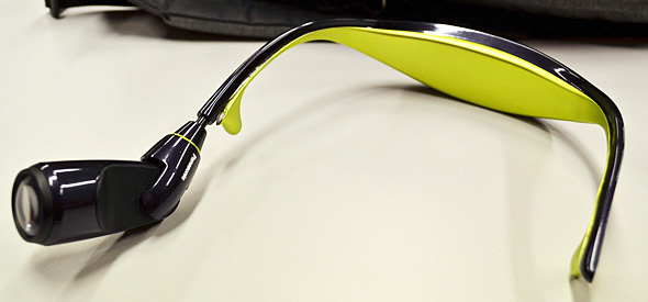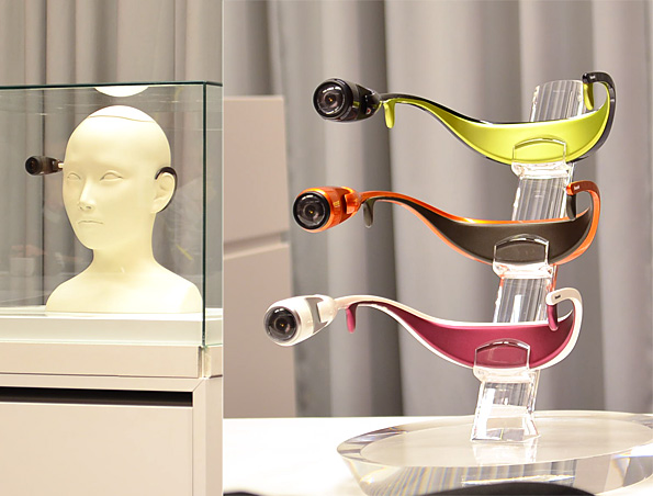 L'idea è quella di una videocamera indossabile in testa al contrario rispetto a un paio di occhiali. Il design è abbastanza ergonomico, scarica il peso della batteria (posta nella parte posteriore) sulla nuca e mette l'occhio della videocamera all'altezza degli occhi. Al momento la montatura non è regolabile e la videocamera tende a cadere facilmente quanto un paio di occhiali in plastica e quindi è stata bocciata dalla platea dei giornalisti per l'uso negli sport estremi.