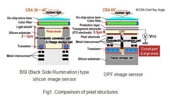 Panasonic ha separato la zona di cattura della luce dai circuiti di logica utilizzando al di sopra di un CMOS uno strato fotoconduttivo organico, basato quindi sulla chimica del carbonio invece che su quella inorganica, come quella del silicio. In questo modo Panasonic ha ottenuto in sensore 8K da circa 36 megapixel capace di produrre immagini a 60 fps, dotato di global shutter e in grado di operare sia ad alta sensibilità, sia ad alta saturazione. Quest'ultima caratteristica è figlia della struttura a strati separati del sensore, visto che è possibile controllare la sensibilità dello strato dei fotorecettori agendo sul voltaggio in mondo indipendente da quello utilizzato dai circuiti di logica sottostati. Panasonic dichiara di poter catturare immagini con questo sensore sia nella modalità ad alta sensibilità con lucein grado di generare un flusso di 4500 elettroni, ma anche in quella ad alta saturazione, in cui il flusso di elettroni può arrivare al numero di 450k. In pratica è come avere un filtro ND elettronico graduale fino a ND32 integrato su sensore.