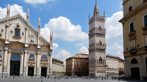 Forzando la posizione 'Piazza Duomo a Milano' i risultati sono più in linea con il giusto punto geografico, anche se la cattedrale che viene creata è un mix tra il Duomo di Milano, quello di Modena e un po' di chiese dell'Italia settentrionale.