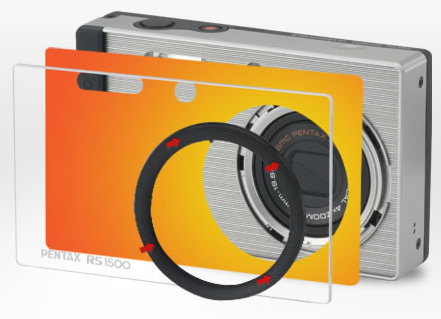 Pentax Optio RS1500 aggiorna questo concetto rendendo ulteriormente più facile il cambio di cover, utilizzando un sistema di ritenzione a scatto e non più quello a viti, che richiedeva l'uso di un attrezzo. La macchina viene venduta con 10 cover incluse nella confezione, ma questa gamma può essere ampliata con le skin messe a disposizione dal sito Pentax o con quelle create dall'utente, sfruttando il modello reperibile tra le risorse online del produttore nipponico.