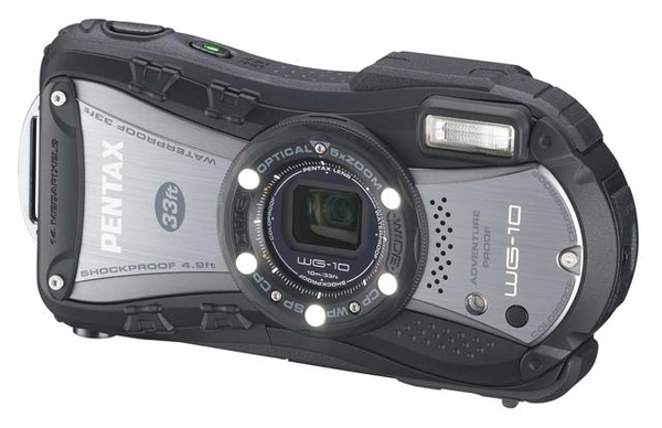 Posizionata un gradino sotto nel listino Pentax troviamo ora la nuova WG-10 dotata di sensore da 14 megapixel capace di catturare video in HD e con caratteristiche di resistenza meno spinte come l'impermeabilizzazione garantita fino a 10 metri di profondità. Le tre nuove rugged della casa sono tutte dotate di sei o cinque luci a LED disposte intorno all'ottica pensate per illuminare le riprese in modalità macro quando, in particolar modo sott'acqua, l'illuminazione scarseggia.