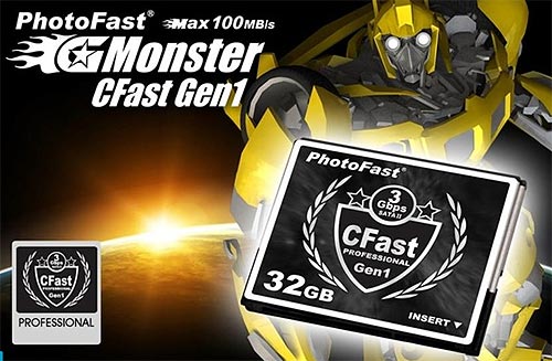 PhotoFast G-Monster CFast Gen1, questo il nome del nuovo modello, raggiunge la velocità citata in precedenza grazie ad un espediente. Integrato all'interno della scheda troviamo infatti un chip che combina le specifiche CF con quelle ATA Serial Transport (AST), il tutto affiancato da un controller SerialATA II 3.0 che permette di raggiungere elevate velocità. Chip NAND Flash completano la dotazione, permettendo di raggiungere la capienza di 32GB.