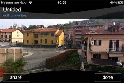 Il procedimento può essere ripetuto più volte e, con un po di pratica si può arrivare ad ottenere foto panoramiche a 360 gradi con un allinemento praticamente perfetto. Qui sopra riportiamo lo screenshot dell'applicazione al momento dell'allinemento e a rielaborazione effettuata.