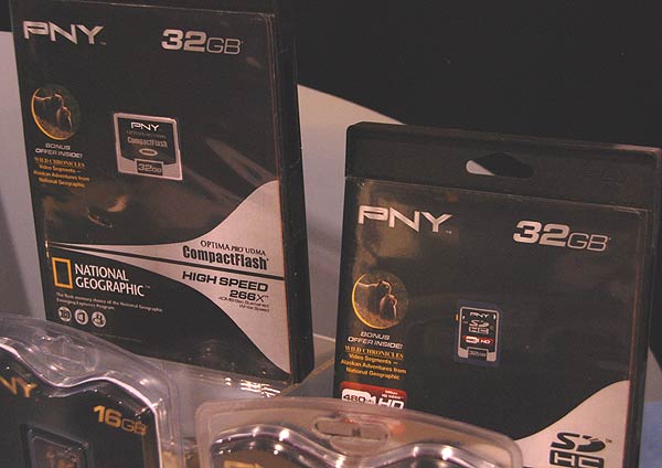 Al pari di Sandisk, anche PNY approfitta dei riflettori del PMA di Las Vegas per presentare un nuovo modello di scheda memoria di tipo SD, contraddistinta da una capienza di ben 32GB. A rafforzare l'immagine di PNY concorre la presenza del logo National Geographic un po' in tutto lo stand. PNY è infatti sponsor della nota casa editrice, seguita da milioni di fan in tutto il mondo sia attraverso i canali televisivi che a mezzo riviste.
