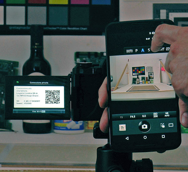 Avere il controllo completo della fotocamera dal proprio smartphone e tablet: è questa una delle grandi novità che ha portato lo sbarco della connettività Wi-Fi sulle fotocamere. Scaricando l'app messa a disposizione gratuitamente dai produttori, in pochi semplici passi è possibile non solo accedere alle immagini memorizzate sulla scheda di memoria inserita nella fotocamera, ma anche utilizzare il telefonino come telcomando a distanza. Nel caso della nuova Olympus OM-D E-M5 Mark II, di cui continua il nostro percorso all'interno delle funzioni più particolari, di cui trovate una panoramica completa a questo indirizzo, la connessione è molto semplice: la fotocamera visualizza sul display un QR Code (una sorta di codice a barre bidimensionale) che inquadrato con la fotocamera del telefonino offre a quest'ultimo tutti i dettagli per una connessione 1-click.
