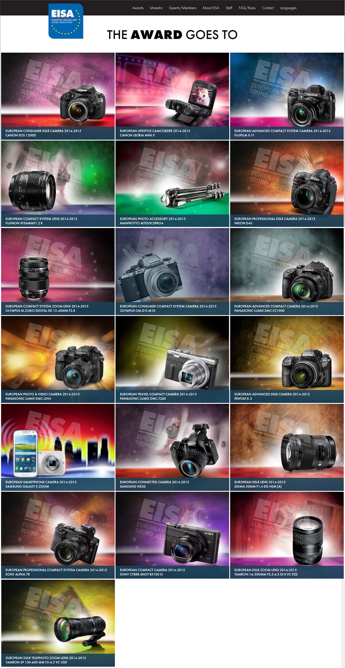 Da citare infine Pentax, che con la sua K3 ottiene il titolo ADVANCED DSLR CAMERA, Sigma (DSLR LENS 2014-2015 al suo 50mm F1.4 DG HSM [A]), e Manfrotto, che vede riconosciuto il suo cavalletto MT055CXPro4 come miglior accessorio fotografico.