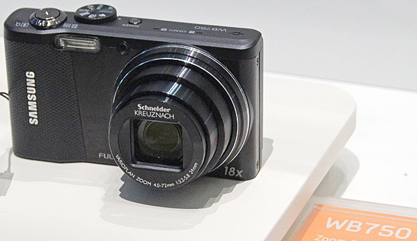 Destinata a un pubblico più evoluto è invece la fotocamera Samsung WB750, che raccoglie l'eredità dei modelli compatti con zoom di buona estensione. In questo caso il sensore CMOS BSI da 12.5 megapixel è accoppiato a uno zoom ottico 18x da 24-432mm equivalenti e apertura F3.2-5.8. Tra le particolarità di questa macchina legate all'uso di un CMOS retroilluminato troviamo la possibilità di scattare raffiche a 10 frame al secondo a piena risoluzione, oppure registrare filmati Full HD 1080p a 30 fps, ma anche arrivare a 1000fps, a una risoluzione ridotta non specificata. Questa macchina dovrebbe posizionarsi tra i 250€ e i 300€.