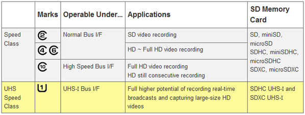 Per quanto riguarda il nuovo standard UHS-1, esso ha il difetto di essere meno comprensibile dal grande pubblico: se le classi avevano la chiara indicazione numerica pari al transfer rate minimo garantito è meno evidente al pubblico che le schede basate su bus UHS-1 si comportano come le schede di classe 10 da punto di vista della velocità di trasferimento garantita.