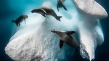 Infatti non si tratta solo di vedere degli animali vivere nel loro ambiente naturale, ma richiama anche la fragilità dell'ecosistema marino (e non solo). La scelta di riprendere un iceberg da sotto la superficie con un'insieme di foche divise tra il buio delle profondità marine e la luce che arriva dalla parte superiore è sicuramente ammirevole.