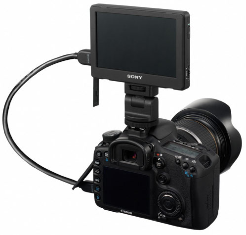 Sony CLM-V55 è il nome di un accessorio realizzato per reflex, evil e videocamere, in grado di offrire all'utente la possibilità di avere un migliore controllo dell'inquadratura e la possibilità di sfruttare la funzionalità live view anche in funzione dell'orientabilità dell'accessorio, come afferma Engadget.