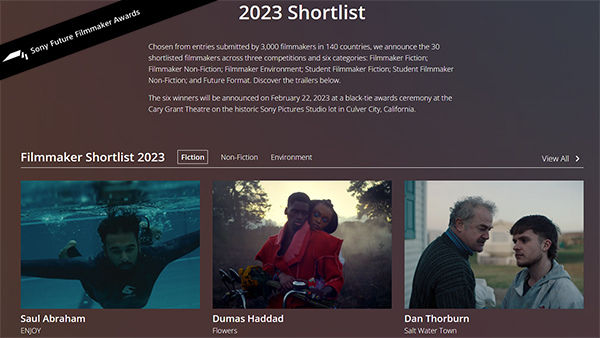 I sei vincitori saranno annunciati il 22 febbraio 2023 nel corso della cerimonia di premiazione che si terrà al Cary Grant Theatre, presso gli storici Sony Pictures Studios di Culver City (California). Alla cerimonia farà seguito una full-immersion di tre giorni offerta a tutti i finalisti e i vincitori dai vertici di Sony Pictures. I sei vincitori riceveranno inoltre un premio in denaro e un set di apparecchiature digitali Sony.
