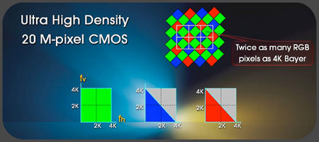 I risultati sono da accreditare al sensore CMOS con griglia 8K e 20 milioni di siti fotosensibili, studiato per registrare una maggiore quantità di informazioni per ogni immagine grazie al sovracampionamento dei colori rispetto ai convezionali sensori 4K con filtro Bayer tradizionale, rendendo l'operazione di demosaicing più fedele alla realtà.