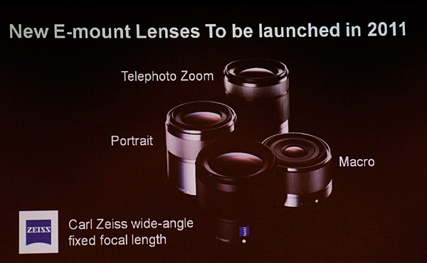 Il 2011 vedrà la nascita di 4 ottiche tutte nuove, fa cui spicca per qualità promessa un grandangolare a focale fissa Carl Zeiss, che verrà affiancato da un tele-zoom, un macro e un obiettivo ideale per i ritratti.