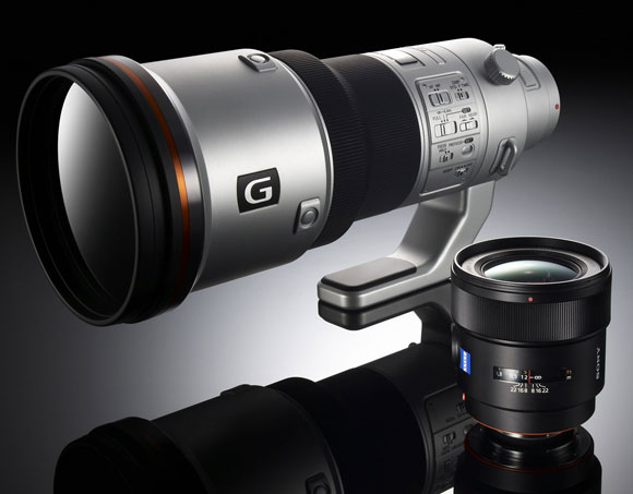 Le novità previste nel corso dell'anno non si limitano solo ai corpi, ma vedono protagonisti anche gli obiettivi: Sony ha messo in mostra un sample pre-produzione funzionante del nuovo vetro Carl Zeiss Distagon T* 24mm f/2 ZA SSM e un mock-up del 500mm f/4 della serie G, blasone che contraddistingue i vetri professionali del produttore nipponico.