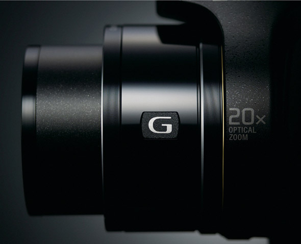Lo zoom ottico è equivalente al range di focali 28-560 mm, la qualità ottica viene assicurata dal marchio G che sigla tutti gli obiettivi professionali di Sony. Anche in questo caso il progetto è derivato dalle DSLR e prevede l'adozione di lenti asferiche ed elementi ED a bassa dispersione per ridurre aberrazioni cromatiche ed ottenere immagini estremamente nitide.