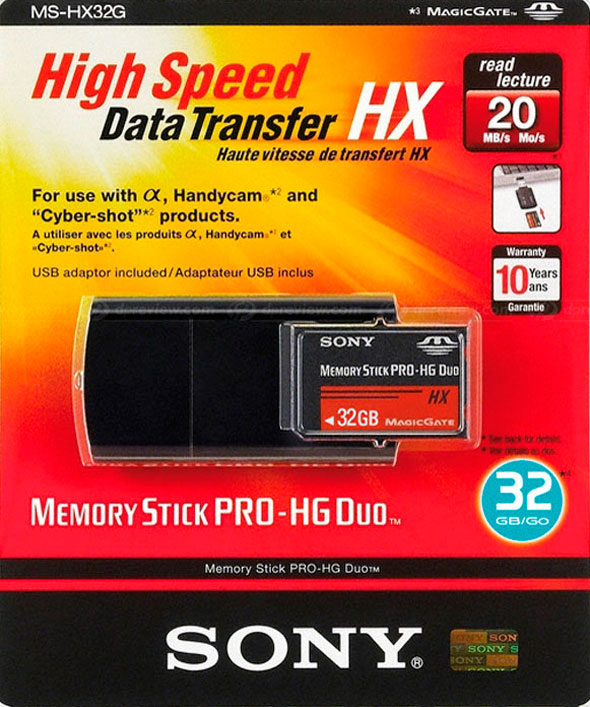 Tra i tagli minori disponibili troviamo Memory Stick Pro-HG Duo HX da 4 GB, 8 GB e 16 GB. Un filmato registrato in qualità Full HD potrà godere di 225 minuti di autonomia su di una singola memory da 32 GB, anche le fotocamere della serie Alfa potranno appoggiarsi alla grande capacità sfruttando appieno le potenzialità dello scatto a raffica per grandi volumi di immagini. Attualmente non si conoscono date di effettiva commercializzazione e prezzi consigliati al pubblico.