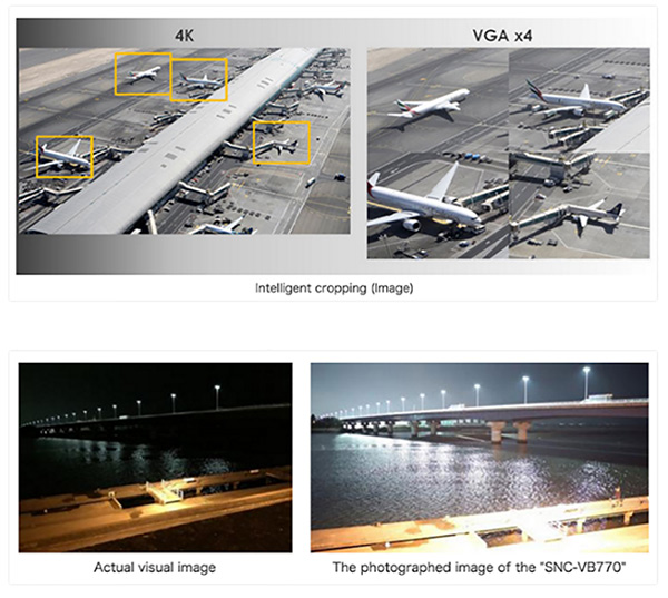 A cosa serve un video 4K per la videosorveglianza? Naturalmente per avere immagini più dettagliate, ma anche per abilitare la funzione intelligent cropping, che dalla singola inquadratura può ricavare 4 riquadri ingranditi a risoluzione VGA , tenendo sott'occhio con una sola videocamera fino a 4 soggetti diversi. Come dicevamo arriverà sul mercato ad agosto, a un prezzo di 850.000 Yen, pari a poco più di 6.000€.