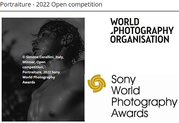 Tra i fotografi in lizza per il premio finale, messo in palio dalla World Photography Organisation, troviamo anche un italiano, Simone Corallini, con uno scatto in bianco e nero che è stato selezionato come il migliore della categoria Ritratti.
