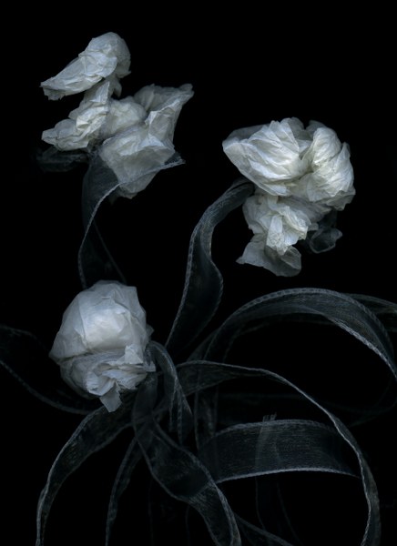Mieke Douglas (Paesi Bassi) per Recycled; non tutto è come sembra in questo scatto in stile trompe l'oeil: sacchetti di plastica simili a un fiore e tulle disposti come in un bouquet ci inducono a rivolgere una seconda occhiata.