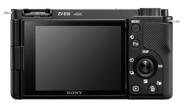 ZV-E10 è quindi pensata primariamente per la registrazione di video, anche ad una sola mano e difatti è caratterizzata da un peso contenuto di 343 grammi. La fotocamera è provvista inoltre di uno schermo LCD apribile lateralmente e orientabile in più direzioni e permette la connessione di microfoni esterni sopra il corpo principale, e offre ovviamente la possibilità di visualizzare lo schermo in modalità selfie e da angolazioni alte o basse.