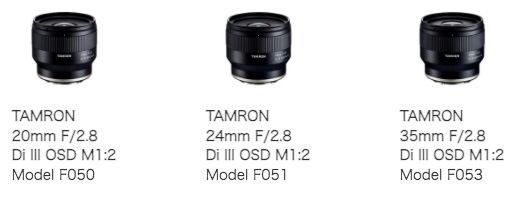 L'avviso è stato pubblicato da Tamron Japan e riguarda il terzetto di obiettivi nelle F2.8 Di III OSD nelle focali da 20mm, 24mm e 35mm, una serie di ottiche compatte a focale fissa pensati espressamente per le fotocamere mirrorless di dimensioni contenute.